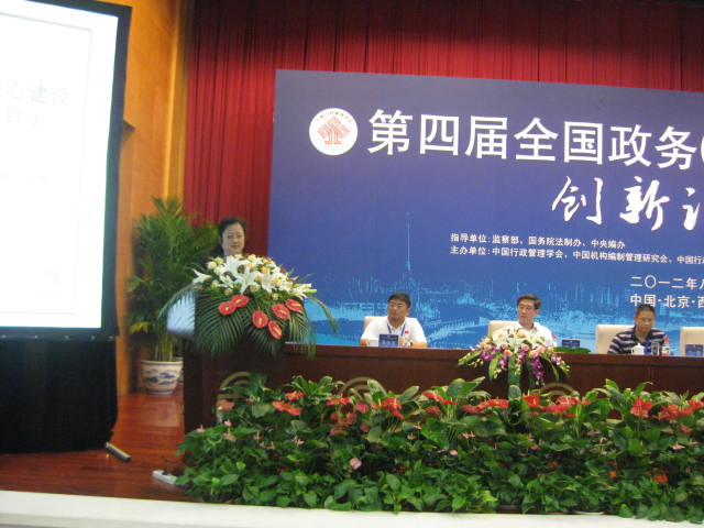 8月8至9日,由监察部、国务院法制办、中央编办指导,中国行政管理学会、中国机构编制管理研究会、中国行政体制改革研究会主办,北京市人民政府支持,西城区人民政府承办的第四届“全国政务(行政)服务中心创新论坛”在北京市西城区举行。本次论坛以“构建政务服务体系,提升行政服务能力”为主题,旨在贯彻落实中共中央办公厅、国务院办公厅《关于深化政务公开加强政务服务的意见》文件精神,进一步推动行政管理体制改革和政府管理创新实践。 国家预防腐败局副局长崔海容,国务院法制办副主任袁曙宏,北京市副市长丁向阳,中国行政管理学会会长王澜明,中国机构编制管理研究会会长黄文平,中国行政体制改革研究会副会长汪玉凯,北京市政府副秘书长朱炎,区委副书记、区长王少峰等出席论坛并发言,来自中央有关部委、各地政务服务中心、学术机构的负责人和专家学者300余人参加了此次论坛。成人抖音