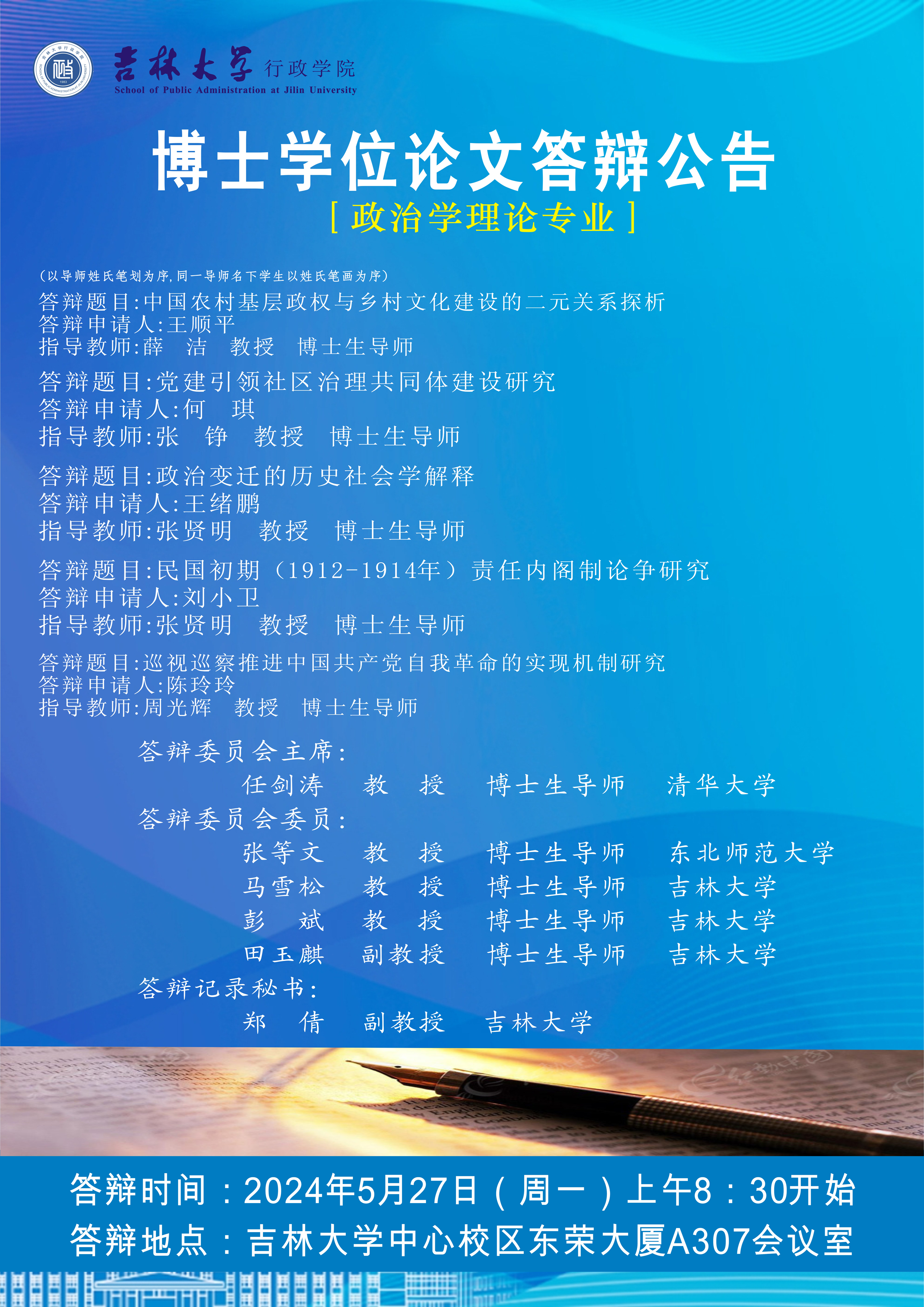 答辩时间:2024年5月26日(周日)上午8:30开始