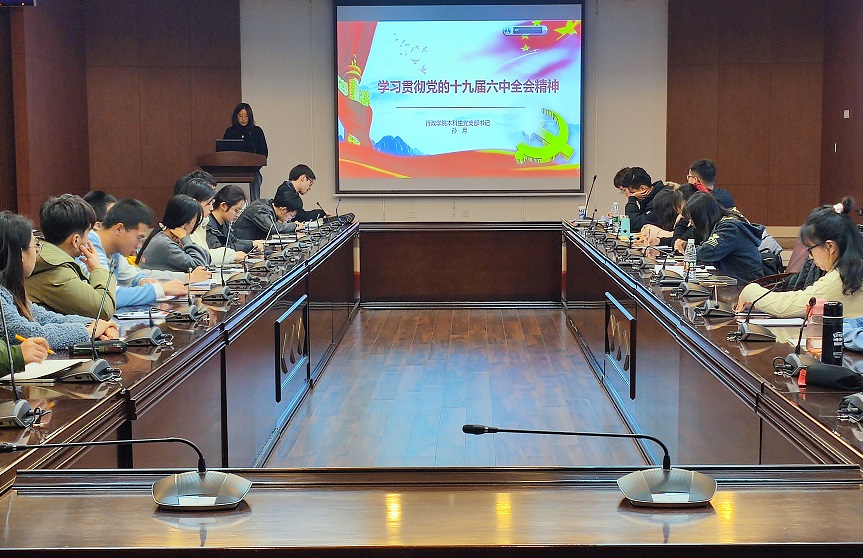 之后,本科生党支部书记孙月为同志们讲授主题党课。孙月围绕“复兴”、“飞跃”、“根本问题”三个关键词,带领各位同志深入学习领悟党的十九届六中全会审议通过的《中共中央关于党的百年奋斗重大成就和历史经验的决议》相关精神。