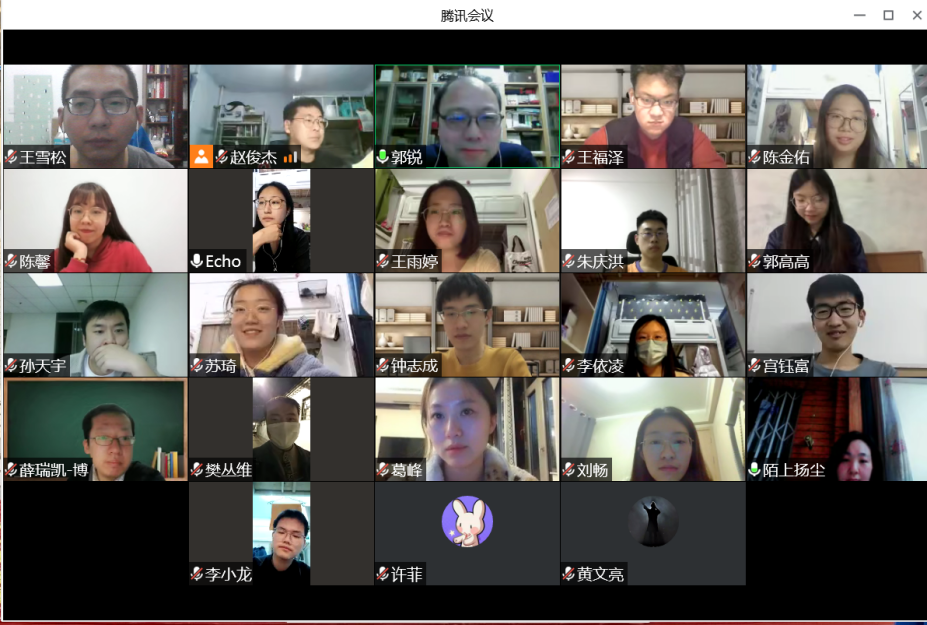 3月17日,刘雪莲老师带领18名学生开展线上讨论。刘老师首先对同学们的生活和身心健康表达了关心,叮嘱大家要好好防护,保持乐观心态。在接下来的讨论中,各位同学针对本学期的学习计划进行汇报,每一位同学展露出良好的精神状态以及积极的学习态度,令老师十分动容。最后,刘老师动情说到,“特殊时期,你们都能乐观面对,懂得感恩,并且积极向上,努力学习,你们都是老师的骄傲!期待春天到来时,我们可以在线下有更好的相遇!”