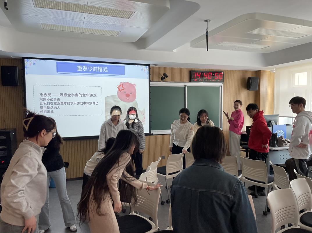 生活中的重要性,并鼓励学生们积极参与,敞开心扉,共同探索心理成长的路径。重返童年环节“抢板凳”——风靡全宇宙的童年游戏,让到场同学在重返童年的欢乐,释放日常压力。