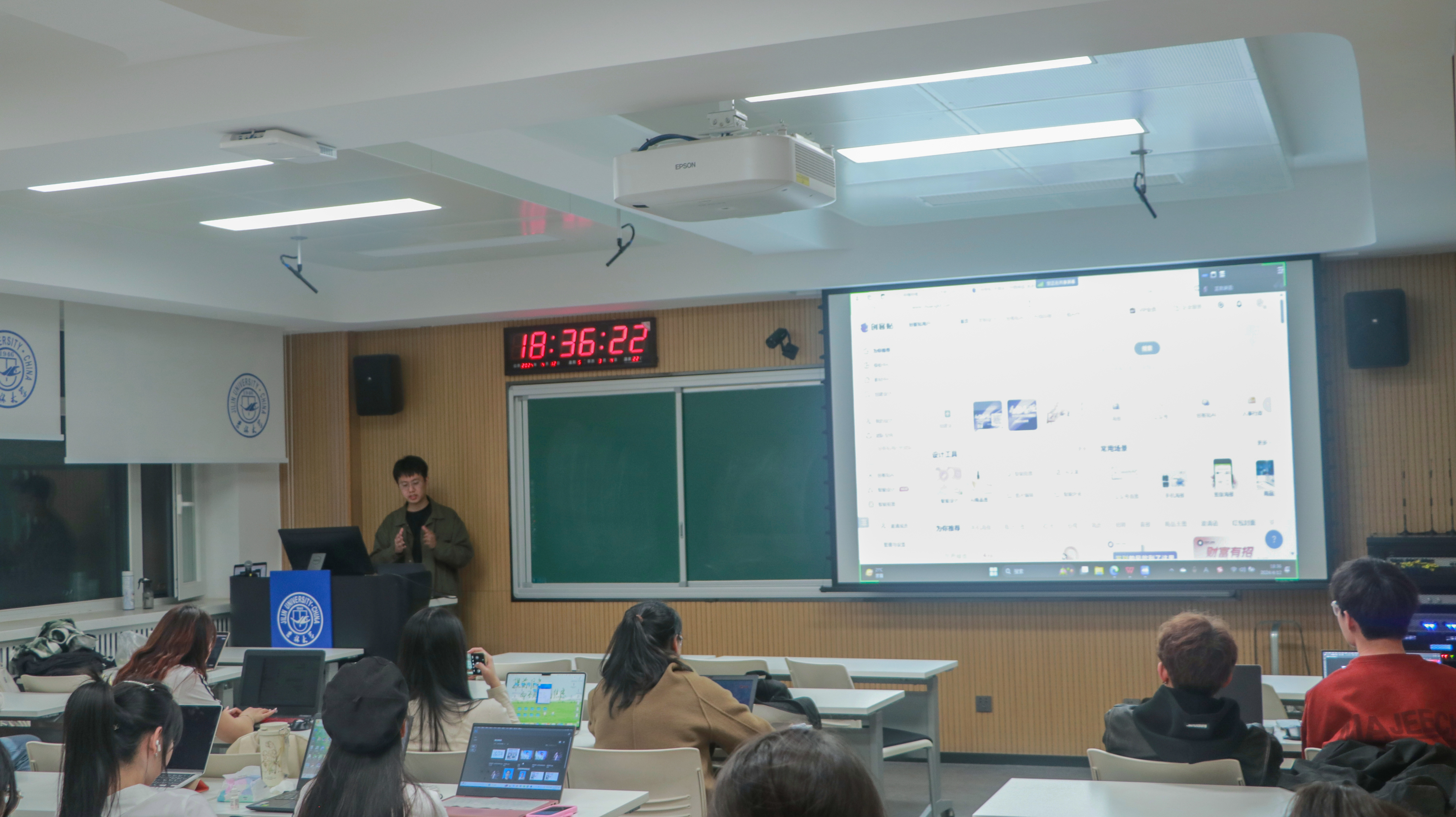 随后,院研会新闻宣传部王超群同学就海报常见结构、海报常用配色、如何寻找海报灵感、制作海报的常见误区与photoshop软件简易使用方法进行相关讲解,院研会新闻宣传部郭禄城同学以“创客贴”平面设计网站为例,向大家介绍了网站使用方法以及海报素材选取技巧。培训环节的最后,研会成员利用海报制作网站进行实操练习。