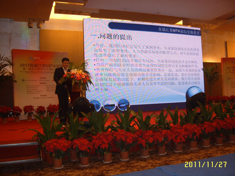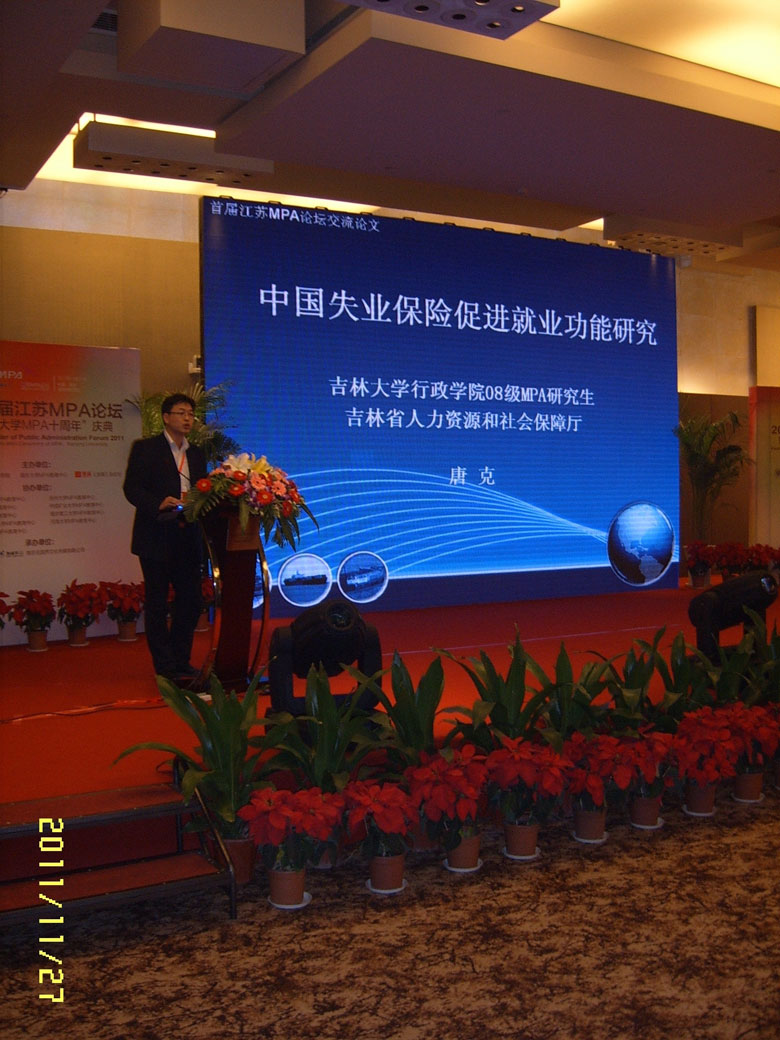 2011首届江苏MPA论坛议题主要有三项:一是促进就业与构建和谐劳动关系;二是如何解决中小企业融资难困境;三是如何以社会管理创新推进和谐社会建设。唐克同学和张斌阳同学的论文被收录到首届江苏MPA论坛论文集,唐克同学还在论坛上做了主题为“中国失业保险促进就业功能研究”的演讲,受到与会领导和MPA同仁们的一致好评,为成人抖音